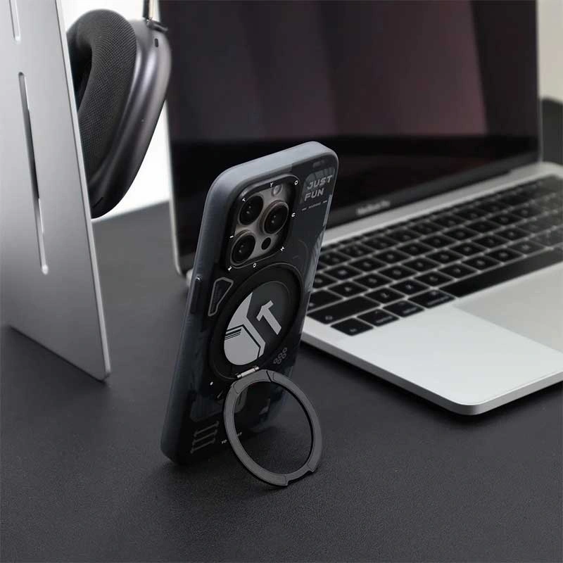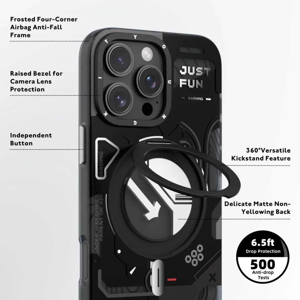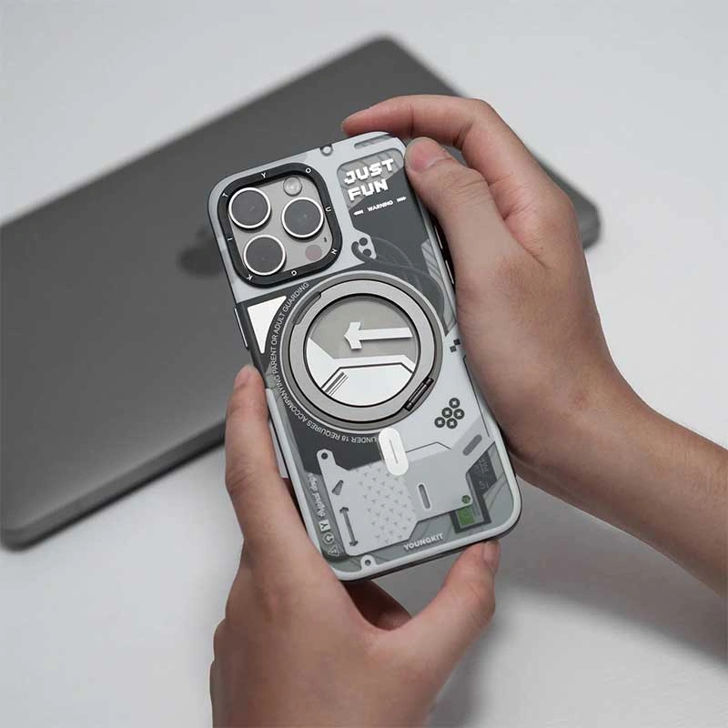 قاب آيفون 16 پرو مکس برند YOUNGKIT طرح CYBERPUNK360 رنگ مشکی | مگسیف با قابلیت چرخش 360 درجه