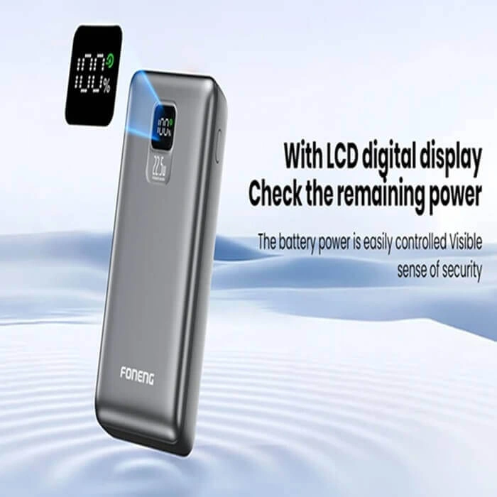 قیمت پاوربانک برند FONENG مدل PX_126 ظرفيت 20000 میلیآمپر، توان 22.5 وات و امکاناتی مثل نمایشگر دیجیتال، کاملاً مقرونبهصرفه است.
