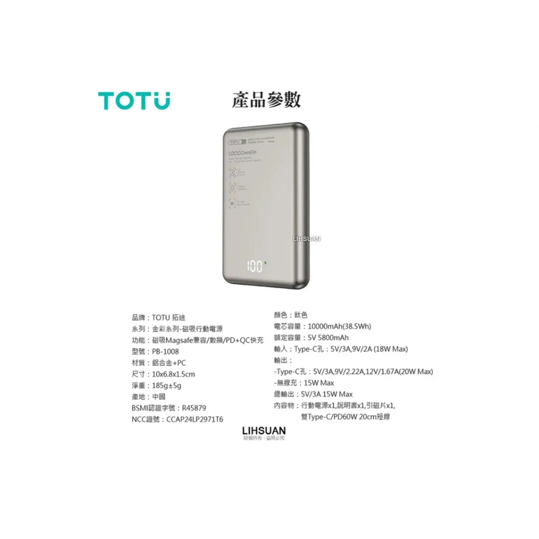 🛠️ مشخصات فنی پاوربانک مگ سيف برند TOTU مدل PB-1008